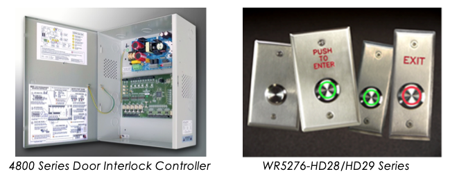 4800 Series Door Interlock Controller accommodates up to five doors, including doors with automatic openers ideal for numerous SMB, clean room and retail applications.
